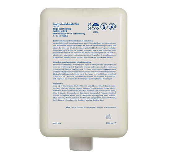 Het Zonkrachtactieplatform adviseert een zonnebrandproduct te gebruiken met minstens SPF 30 en een krachtig UVA-filter. De zonnebrandcrème van CareLyn voldoet hier ruim aan en biedt zodoende op elk uur van de dag een optimale bescherming, aan kinderen en volwassenen, van elk huidtype.