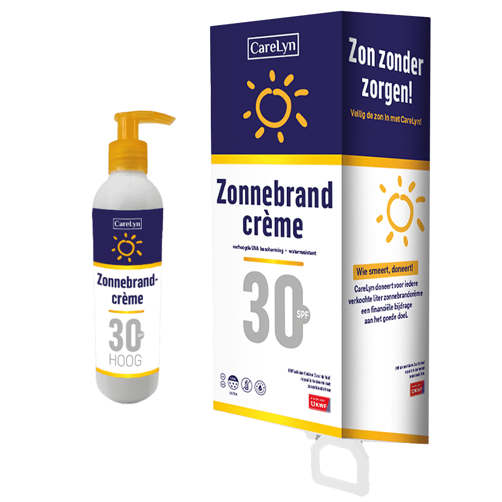 CareLyn doneert voor iedere verkochte liter zonnebrandcrème een financiële bijdrage aan het goede doel.